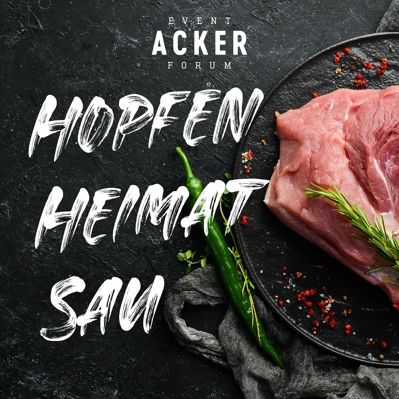 Änderungen an Veranstaltung einreichen Name der VeranstaltungBeschreibung<p><strong>Ehrliches Fleisch. Gutes Bier. Echter Geschmack.</strong></p> <p>Erleben Sie ein Fest rund um das Duroc-Schwein! Unser Metzger gibt spannende Einblicke in Haltung, Qualität und Geschmack. Genießen Sie Spezialitäten wie Pulled Pork, Rippchen & Würste – begleitet von einem Bier-Tasting mit 4 bayerischen Bieren, vorgestellt vom Braumeister persönlich.<strong> Regional. Authentisch. Unvergesslich.</strong></p> <p>Folgende Bestandteile sind im Preis inbegriffen:</p> <ul> <li><strong>Aperitif</strong></li> <li><strong>Gruß aus der Küche </strong></li> <li><strong>1: Gang: </strong>Schwarz Geräuchertes / Spargel / Wildkräuter / Tomate / Hafer</li> <li><strong>2. Gang: </strong>Duroc / Iberico/ Bacon / Kartoffel / Pastinake / Rotwein</li> <li><strong>3. Gang: </strong>Biskuite/ Bier / Mascarpone / Brombeere</li> </ul> <p>Menüpreis pro Person nur <strong>69,00 € €</strong></p> <p><strong>Tickets unter</strong> <u><a data-tabindex-counter="1" data-tabindex-value="none" href="https://www.dasacker.de/specials-termine/veranstaltungen.html" tabindex="-1">www.dasacker.de/specials-termine/veranstaltungen.html</a></u></p> Bild Sie können hier Dateien ablegen Erlaubte Dateitypen: NameVorschauBeschreibungAlternativtextUrheberrechtLizenzDateigrößeTypZuletzt geändertKategorie2026-02-16_14-50-37-event_vorschau_2026_quadrat_theoticketshop3----818.33 kBBild20.02.2026, 07:33 - Hinzufügen Datum vonDatum bis(Bitte auswählen)Die Acker AlmVeranstaltungsortDie Acker AlmDas ACKER Event ForumVeranstalterIhre AngabenVornameNachnameE-MailKommentarCaptchaForenameHiermit akzeptiere ich die Datenschutzerklärung Eingaben absenden Abbrechen * Pflichtfeld Möchten Sie die Änderungen verwerfen?