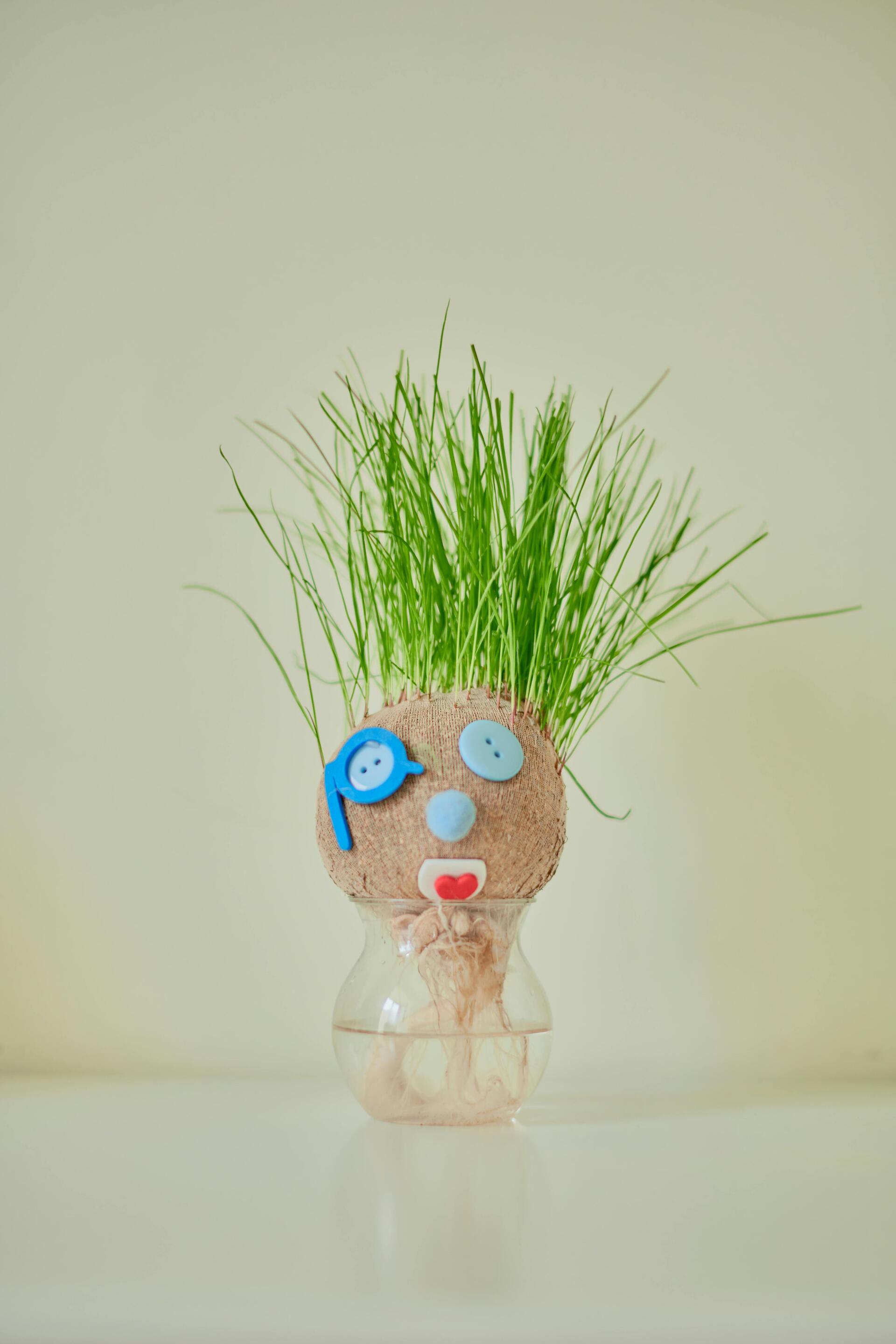 Gemeinsam gestalten wir lustige Grasköpfe inkl. Hoftour und Fütterung.